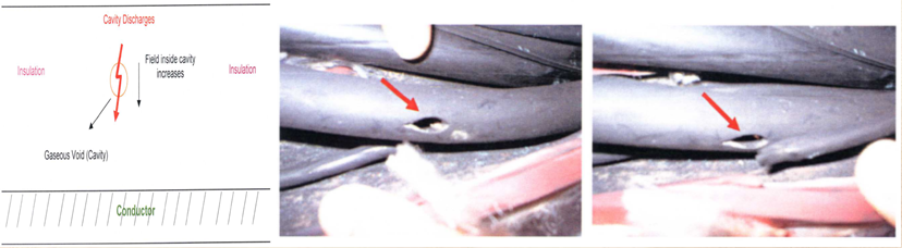 內(nèi)部放電通常發(fā)生在絕緣體中存在固體雜質(zhì)、空氣泡、濕度、局部損傷等區(qū)域。當(dāng)電場強(qiáng)度超過這些區(qū)域的擊穿強(qiáng)度時,電荷會在絕緣體內(nèi)部產(chǎn)生放電現(xiàn)象。